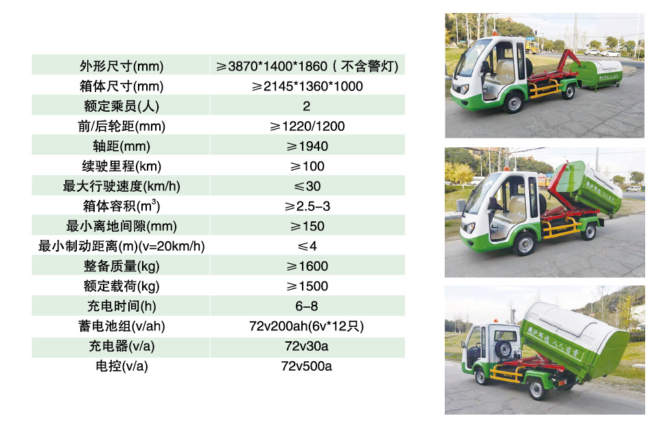 車身采用高強(qiáng)度飯金鋼制材質(zhì),耐腐蝕。車箱為全封閉不銹鋼箱體。操作系統(tǒng)優(yōu)化設(shè)計(jì),多路閥液壓控制。整車控制系統(tǒng)采用電阻式加速器。具有防電磁干擾、防飛車、啟動(dòng)延時(shí)和倒車減速等安全功能。前檔風(fēng)采用鋼化雙層夾膠玻璃+雨刮器:車身防銹。前后均為一體式車橋結(jié)構(gòu),后橋采用全浮結(jié)構(gòu)。采用真空輪胎,載重負(fù)荷高。前后濃壓制動(dòng)。具備電動(dòng)方向助力系統(tǒng)。配備電壓表、電流表、電量表、計(jì)時(shí)器、轉(zhuǎn)向指示燈、轉(zhuǎn)向開關(guān)、危險(xiǎn)警報(bào)開關(guān)及組合開關(guān);配備后視鏡、前照燈、前后轉(zhuǎn)向燈、組合后尾燈、電喇叭、倒車蜂鳴器及高位剎車燈